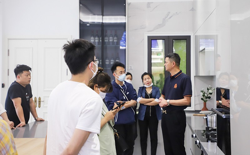 品鑒會始伊,在工作人員的帶領下,來場嘉賓進入北斗星智慧廚房體驗館,以黑白灰為主基調,色彩明快、簡約歡愉的SI形象,讓參會團感受到了北斗星的高品位與高規格,引領時尚生活。其中北斗星整體廚房的的裝修風格也給在場設計師們帶來了新的靈感。
