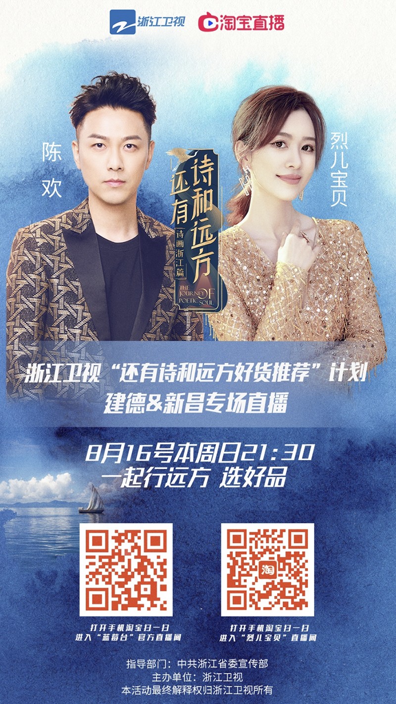 本周日晚21:30浙江衛(wèi)視官方淘寶直播間