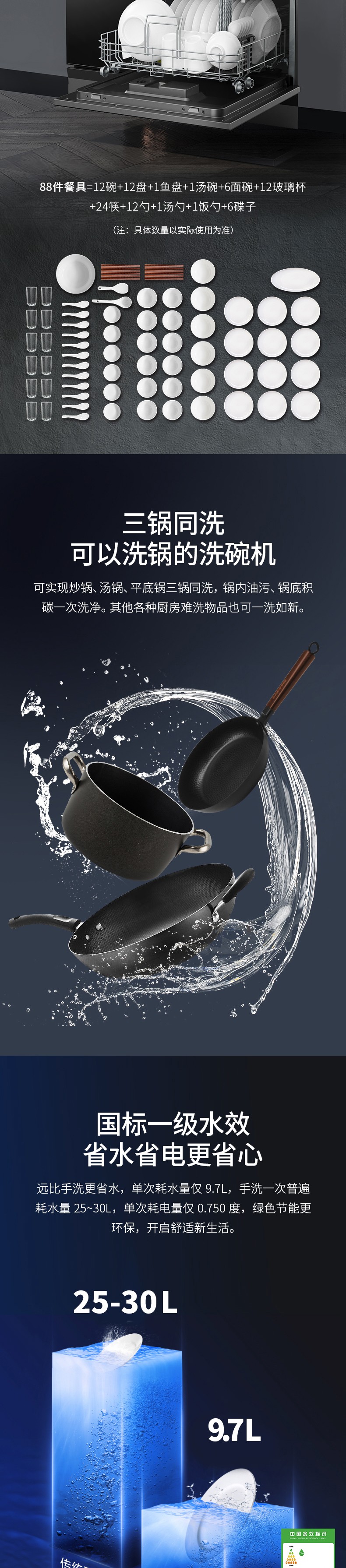 12套大容量洗碗機(jī),可容納88件餐具